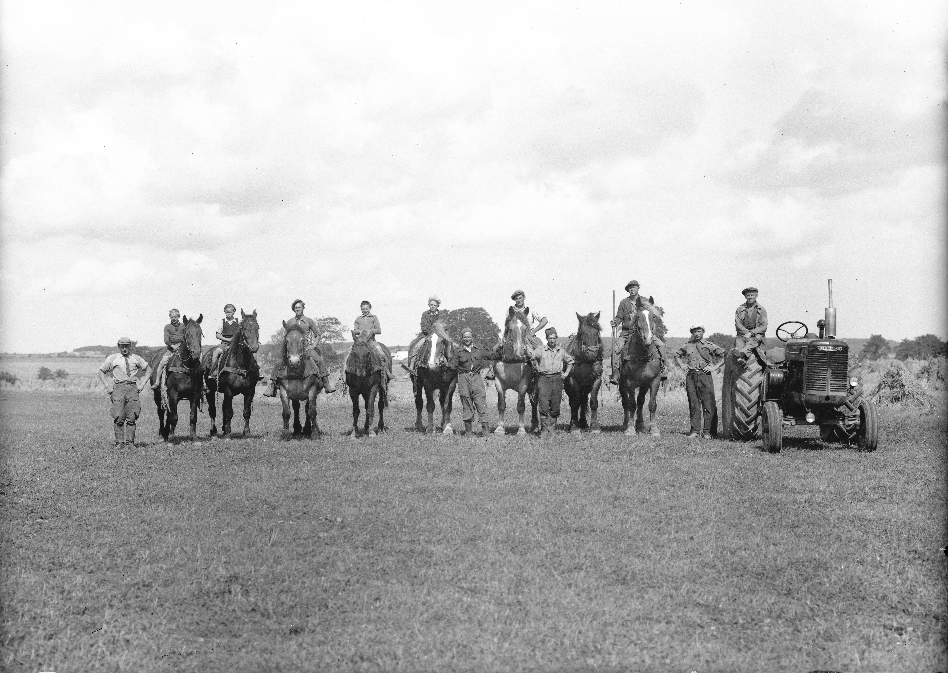 | Titel: | Gruppebillede med heste og en traktor |