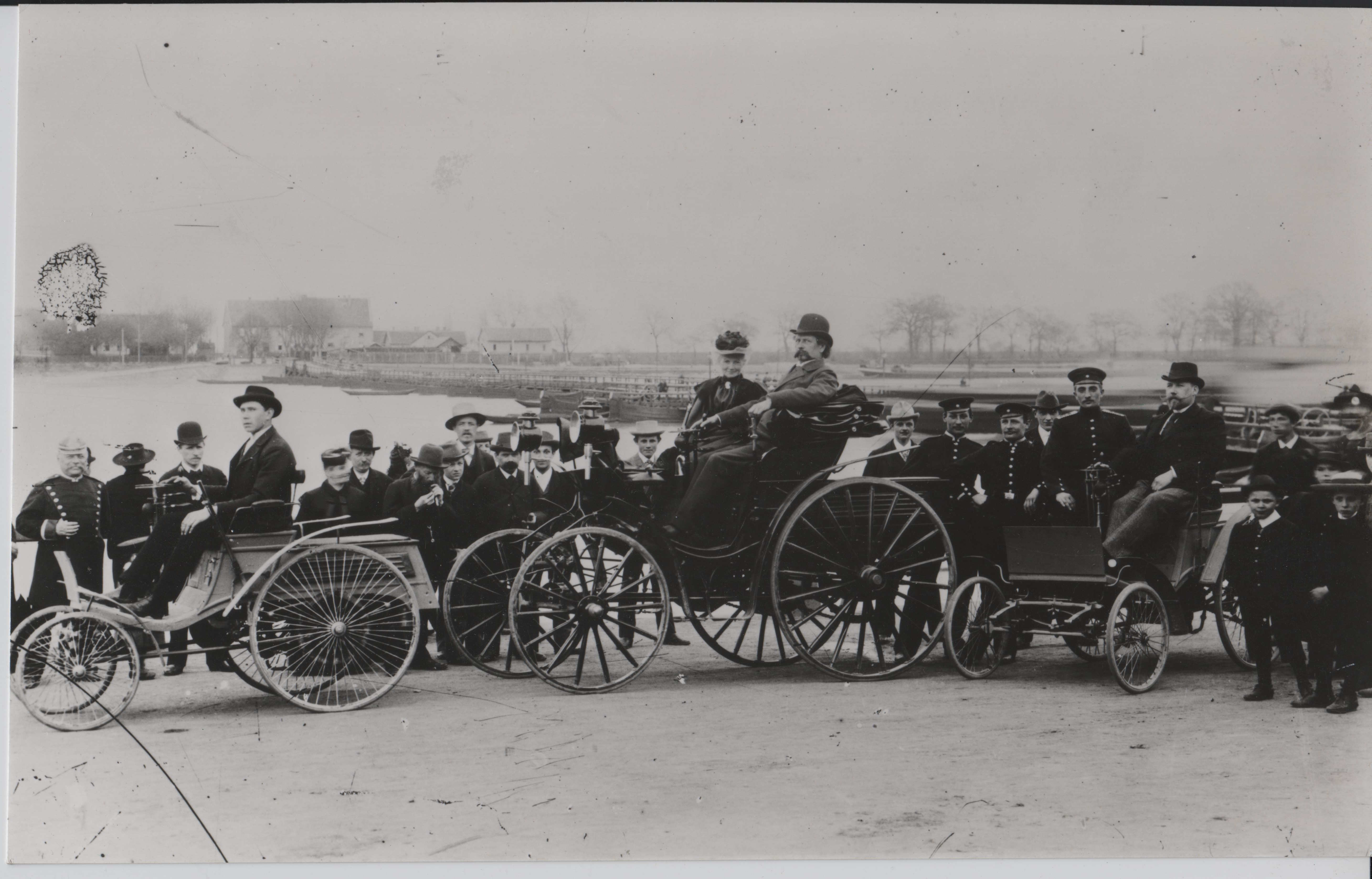 Beskrivelse:Karl Benz og frue. Det sidste billede med udflugten til Worms er nok ikke så tidligt som 1888.
