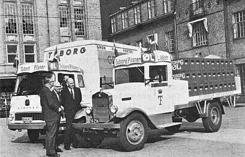 kolossale dimensioner, og med en egenvægt på 8,5 t kun for viderekomne at tage på udrykning med. Denne trio af Triangel'er, alle anvendelige og køreklare, er enestå- ende. Man kan her få et indblik i et stykke dansk bil- og industri- historie, som næsten er glemt, nu da der praktisk talt kun kan præ- steres knallerter på det hjemlige transportmarked. Triangelvognen var ikke det lille lands billige fusk i skyggen af de store. Både forarbejdning og formgivning var i tung og overordentlig gedigen kvalitet - i bedste forstand uraffineret og uden modepræg. Produk- tionen ophørte i fyrrerne, efter at der var leveret nogle få tusinde vogne, men tre af dem gør altså stadig tjeneste hos producenten af en af landets mere livskraftige varer. is Illustration: 1928/29 lastvogn.