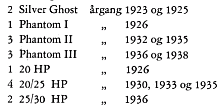 med en frokost. Alle de typer, Rolls-Royce fremstillede fra 1907 til