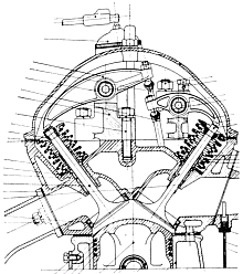 halvkugleformede forbrændingskamre. Der var ikke overliggende knastaksler, men ventilerne blev