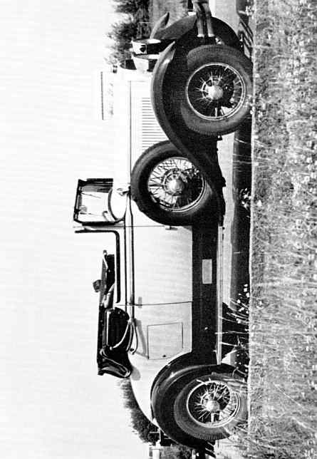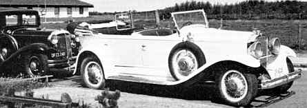 Næste punkt på dagsordenen hos E. F. Jacobsen i Ringkøbing er en syvpersoners touring af samme slægt, Studebaker. Det er en President 1930, indført fra Norge. På billedet ser den imponerende ud i sin hvide elegance, men Jacobsen oplyser, at den også er hvid indvendig på steder, hvor den ikke skal være det, så der skal lægges et stykke arbejde i vognen, før vi får lov at se den til vore løb og udflugter.