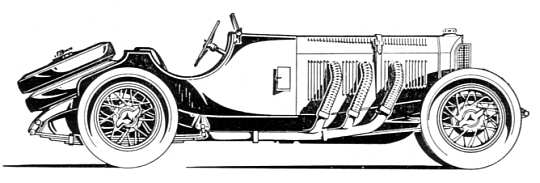 ser således, at K står for kurz (kort) og altså ikke for kompressor. (Det er formodentlig denne fejltagelse, som har været med til at forlede en af vore kendte automobilsamlere til at tro, at hans Typ 630, 1929-30 er en Mercedes-Benz Typ K 192 3, desuagtet at Daimler og Benz endnu ikke var slået sammen i 1925, at Modell K først kom på markedet i 1926, og at man med et målebånd let kan konstatere, at vognen ikke er på det afkortede chassis!). K modellen fik et fantastisk ry som sportsvogn, på trods af at bremser og vej beliggenhed ikke helt stod mål med motorydelsen, og visse, denne gang ikke slet så velmenende sjæle, fik da også, med englænderes karakteristiske sans for humor, givet den det lidet flatterende øgenavn „the flying death-trap". For at råde bod på disse mangler kom året efter Modell S (S=Sport) 26/120/180 PS. I England |