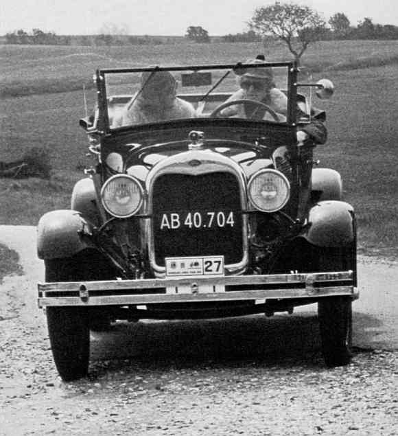 På siden til venstre ses for oven Bent Olsens sjove Austin 10/4 1935, der deltog både i Nordsjællands- og Bromølleløb og vandt førstepræmie i sidstnævnte. Jens A. Baggers Rolls-Royce 20/25 sportssedan fra 1934 vandt førstepræmie i Nordsjællandsløbet. Derunder Henry Petersens nyrestaurerede Plymouth Six 1933 og Flemming Rentsch' 1932 Rolls-Royce 20/25. Til højre Ole Abels Ford A 1929 roadster. |