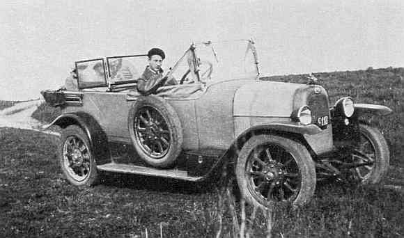 Til venstre fem model 501. Forfatterens egen, K 611, er et eksempel på denne arbejdsomme models langlivethed. Fra første indregistrering i april 1923 hårde den samme ejer i 30 år. viktualiehandler Hansen, Jagtvejen i København. Ægteparret Hansen boede ganske vist lige oven på forretningen, men kørte en stor del af året frem og tilbage til sommerhuset på Stevns, og der løb desuden mange kilometer på under talrige ture til Østrig, Italien og Frankrig. Inden Hansen døde i 1953 havde han lovet salgschauffør hos Houlberg Jacobsson at han måtte overtage vognen, og den kom straks på en ny langtur til Østrig. Derpå skiftede vognen ejer et par gange til den kom i gode hænder hos Henning O. Johansen. der i adskillige år brugte den flittigt, både til daglig og i DVK-løb. Først omkring 1965 gik den ud af daglig brug. Hvor mange kilometer den har kørt kan ikke afgøres, men restaureret har den aldrig været, blot vedligeholdt, og den starter stadig ved et tryk på en knap. Her er den fotograferet på en udflugt sammen med kørelærer A. P. Svendsens K 257. Det skulle være snestorm før man fandt på at lukke kalechen. Sidestykker var ikke standard, de blev lavet herhjemme efter kundens ønske af Vald. Larsen eller Nørgård, K 611 fik kun trekanterne. Til højre øverst en dansk, roadster der sikkert er lavet af Olsen og Henriksen, Godthåhsvej 28. Nederst t/l venstre Neesgårds onkel Martin da han var chauffør for grevinde Reventlow, Rudhjerggård på Lolland. Bemærk udelt vindspejl type 1919, men senere skærme. |