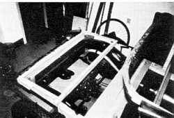 rede hovedramme med døre. Selvom dørene ikke var rusttærede afmonteredes pladen fra trærammen. Trærammen blev også adskilt for at genlime og indsætte nye dyvler i hjørnesamlingerne. Endvidere fremstilledes et hjørnebeslag både til for- og bagdørenes forreste hjørner. Karrossen er nu klar til at sætte på chassiset til påbygning af den løftede ramme.
