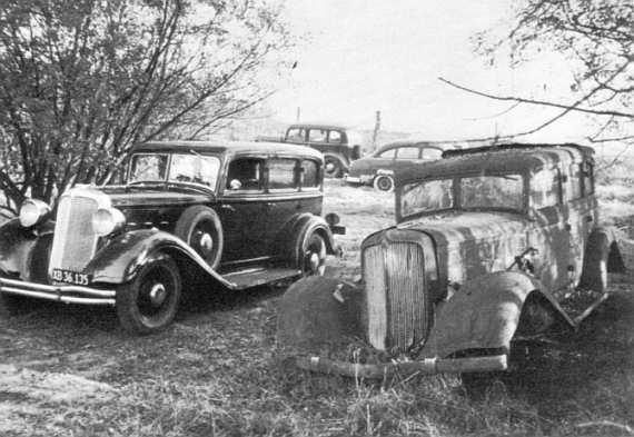 Herunder: På en hugger plads i Assentoft mødte Børge Jensen et sidestykke til sin 1933 sedan. Den blev hjemført som reservedele. Børge Jensen har desuden en 1932 model under restaurering. |