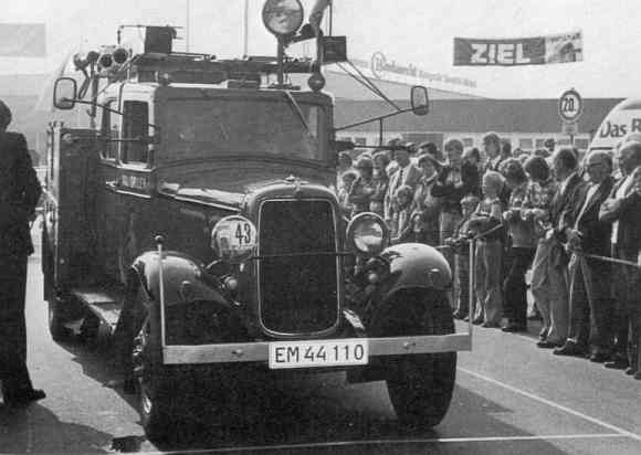Nielsen og Peer S. Andersen kørte i sidstnævntes 1932 Ford V8 brandbil,