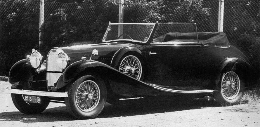 cietetet havde bemærket at Conways vogn havde forkromede h]ulmøtrikker, så. ved præmieuddelingen fik han overrakt fire af de rigtige, som skal være polerede (værdi ca. l500 kr.). Længst til højre stikker John Marks' type 51 næsen frem. Den har |