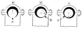 I fig. 2 a) er akselen i ro og hviler på lejet i