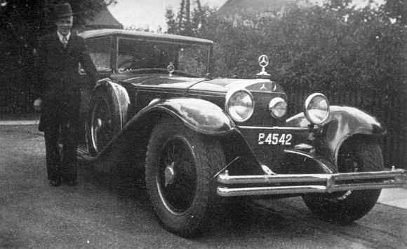 Odense 1936. Frederik Steenbergs bror Theodor ved faderens MercedesBenz med karrosseri fra Roskilde. en Th. Steenberg i Hjørring, men mangler tilsyneladende et led, idet vognen indregistreredes første gang i Danmark 28. februar 1930, mens fabrikant Steenberg ikke købte den før 15. september 1934. Frederik Steenberg, søn af Severin Steenberg, den daværende indehaver af Th. Steenbergs Fabrikker i Hjørring, fortæller da også, at hans far købte sin Mercedes-Bent af lensgreve H. C. Schimmelmann til Lindenborg, og at salget formidledes af en maskinmester Køhn, som på det tidspunkt havde ansvaret for grevens maskinpark. Frederik Steenberg husker endnu, at vognen blev solgt som en 1931 model, og at dette gav anledning til et retsligt efterspil. Hermed forklares den ret usædvanlige kendsgerning, at Daimler-Benz har noteret en næstfølgende ejers navn i arkiverne, idet man må gå ud fra, at Severin Steenberg henvendte sig til fabrikken for at få oplyst det faktiske fabrikationsår. Under hvilke omstændigheder den |