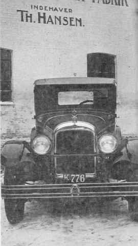 1916 på det tekniske regnskabskontor på Burmeister & Wains Maskin- og Skibsbyggeri i København. Så værkfører på den bekendte Larsens Vognfabrik på Frederiksberg (hvor der blev fremstillet hestevogne, biler og sporvogne). 28/9 1918 bestået prøve for arbejdsledere i metalindustrien på Fagskolen for Håndværkere og Mindre Industridrivende i København. Og delvis samtidig med noget af det foregående fra oktober 1916 til august 1921 værkfører (muligvis overværkfører) og faglærer på Teknologisk Instituts grov-og maskinsmedje i København. I den periode var Hansen en meget flittig foredragsholder og artikelforfatter med emner som »Slibning«, »Smedning af Drejestål«, »Om at tage Patent«, »Specialiteter«, »Hvordan man kan drive en Smedeforretning rentabelt og forbedre dens Indretning« og »Fabrikationen af Hesteskosøm på A/S Nordiske Tråd- og Kabelfabrik i Middel- Tb. Hansen brugte sin egen Brennabor til reklame for sine kofangere. Til højre en Nasb. |