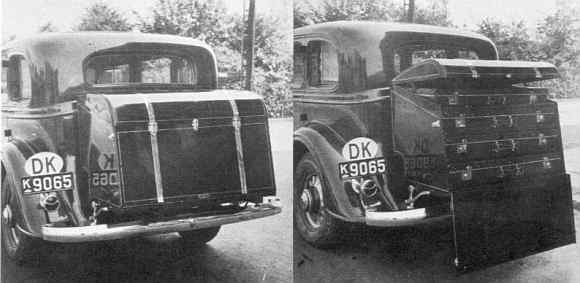 pladesmedjen, til højre kuffert på en Buick.
