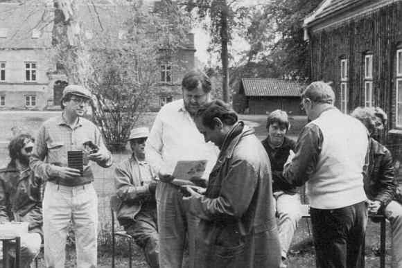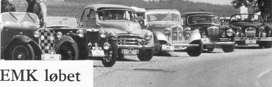 Et sjovt løb fra og til Nivå, arrangeret af Claus Thorkil Petersen med assistance af Steen Haselmann — de ses ved overrækkelsen af præmier til Erik Olsen og Ib Jensen. Førstevinderen Jørgen Hansen var forsinket af reparation. Herover Olsens Singer, Henning Andersens M.G. TC, Jens Chr. Jensens Morris Oxford 1954, Peer Hedemanns Adler Trumf Junior, Jonassens Lancia Aurelia og Cliff Geniles Jaguar XK 150. Til højre øverst Jørgen Behrendt i hans og Hasselmanns Citroën 15-Six 1950 (ex-Harup), Jørn Sandgård Jensens Chevrolet 1929, indkøbt i Nordjylland, derunder Ole Sommers FIAT 1100 1962 og Frederik Johansens Ford A 1930 Phaeton, kørt af Peter Damgård. Fotos: Peter Bering. |