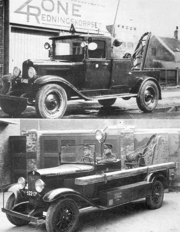 Chevrolet Six udrykningskranvogn stationeret på stationen på