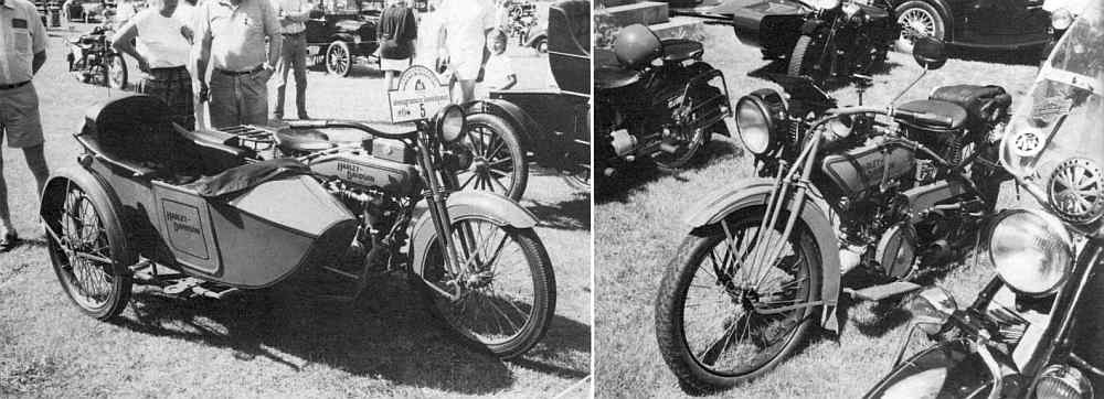 To gamle Rarley-Davidson: Ove Leerbecks 1919 med sidevogn og Carlo Olsens 1920 Sport. Preben Pedersens Dodge D5 1937.
