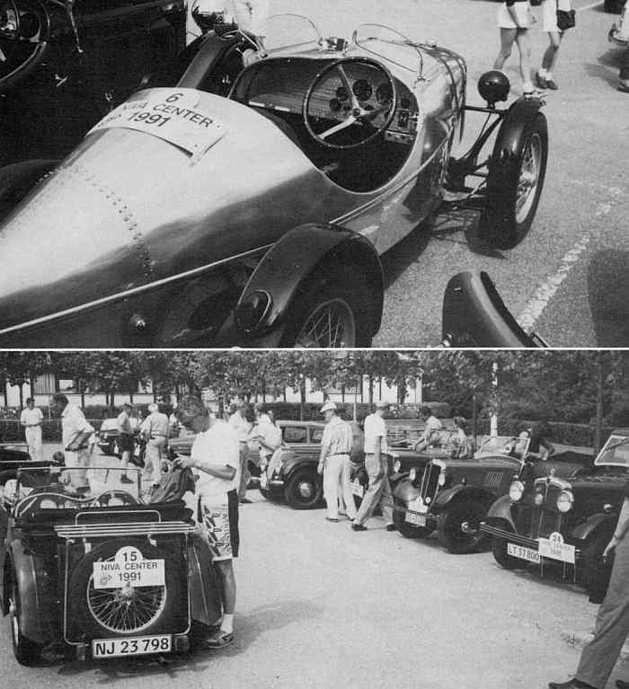 Nivåløbet Til venstre Klaus Gottliebs Austin Seven Special på en anden led end sidst, og derunder diverse deltagere. Herunder en stor sjældenbed.- En FIAT fra 1930'erne. Eilif Larsens 508 Balilla 1936, af den 4-dørs model som får en ladeport i siden når begge døre åbnes.