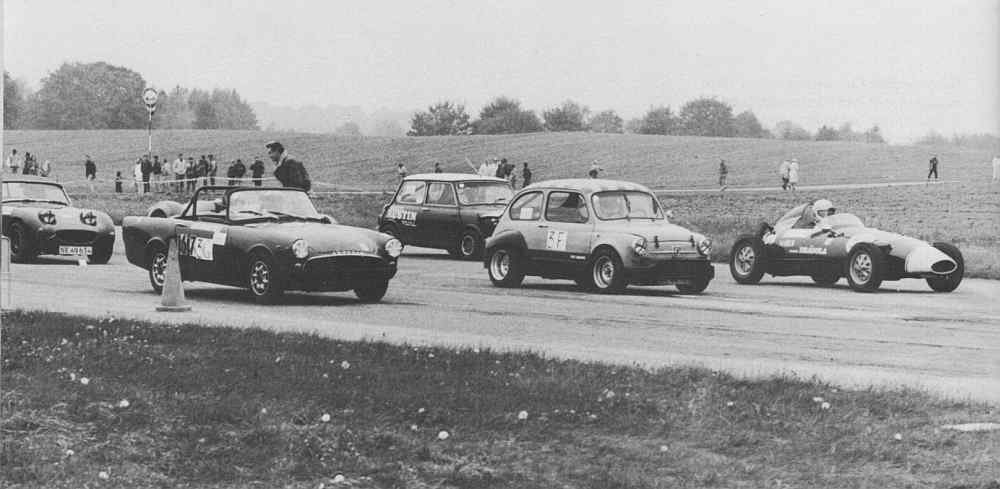 I startfeltet genkender man Jesper Hermanns Sunbeam Alpine og DTMs Alfa Dana, og imellem dem et voldsomt tilfælde af FIAT 600 1971, versionen er benævnt Abarth 1000 TC og blev fremført af Henrik Fasmer. |