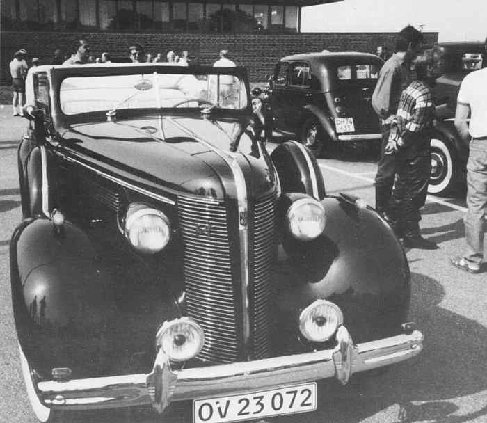 Erik Kjærs røde Buick 40 Special 1937 vakte opsigt. Todørs cabriolet, muligvis dansk karrosseri på canadisk chassis. Niels Kjæigårds Ford V8 1935 cabriolet.