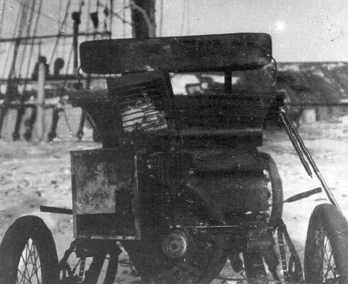 stationær motor, idet der blev lagt en rem om højre |