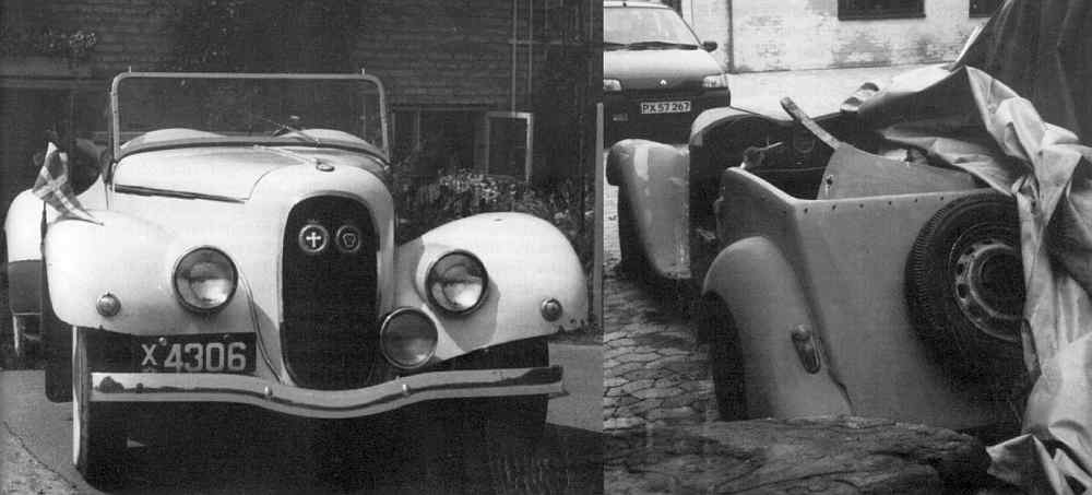 Jesper Hermanns næste restaureringsprojekt er en FIAT 508C, dvs 1100, Special, bygget af ingeniør på Århus Oliefabrik E. Lorentzen med hjælp af hans kones fætter i 1948, med anvendelse af blandt andet forskærme fra Citroën. Her er vognen som ny og som den ser ud i Øjeblikket. |