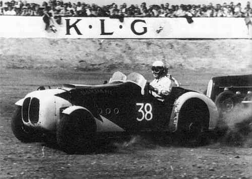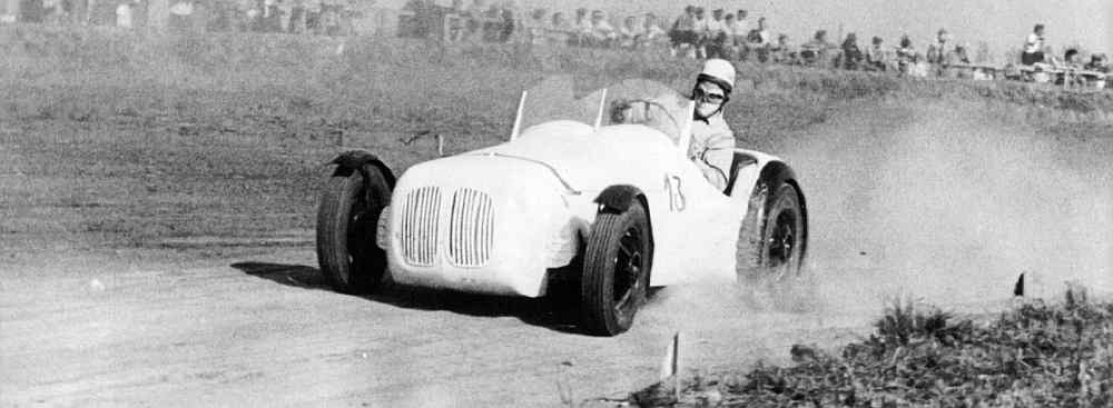 En Ford V8 specialracer blev kørt endnu på Roskilde Ring af Evald Andersen, der var nok så kendt som Citroën-kører. Af konstruktionsmæssige særpræg ved raceren huskes nogle kontravægte, som kunne glide op og ned og modvirke vognens krængning. En gang gjorde maskineriet knuder lige før en weekends løb, Evald lånte resolut motoren fra en fragtmandsbil, startede uden problemer på løbsdagen og havde motoren tilbage i fragtbilen tidsnok til at vognmanden kunne køre mandag morgen. Samme vogn blev kørt af Evald Andersens rallypartner Rotbøl Ørum i enkelte løb. Her er den på Roskilde Ring foran Elo Sørensens. |