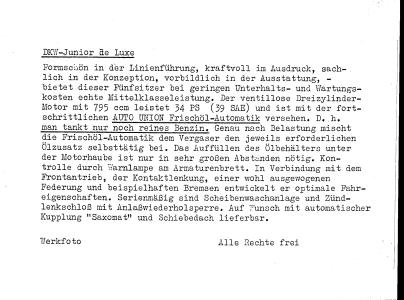 Autounion SP1000 Autounion 1000 Universal Autounion 1000 Limousine DKW luxus coupé 1956 DKW junior deluxe |