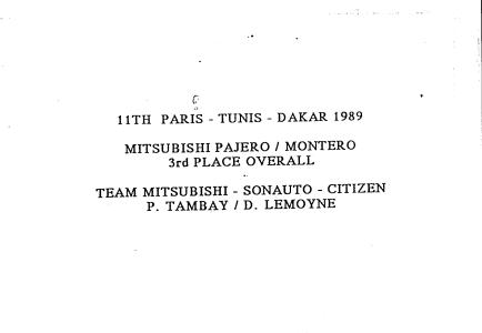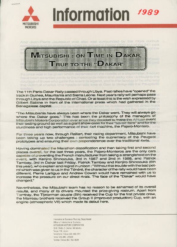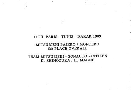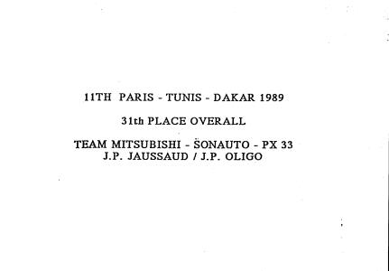 | Titel: | Mitsubishi Paris-Dakar 1989 |
