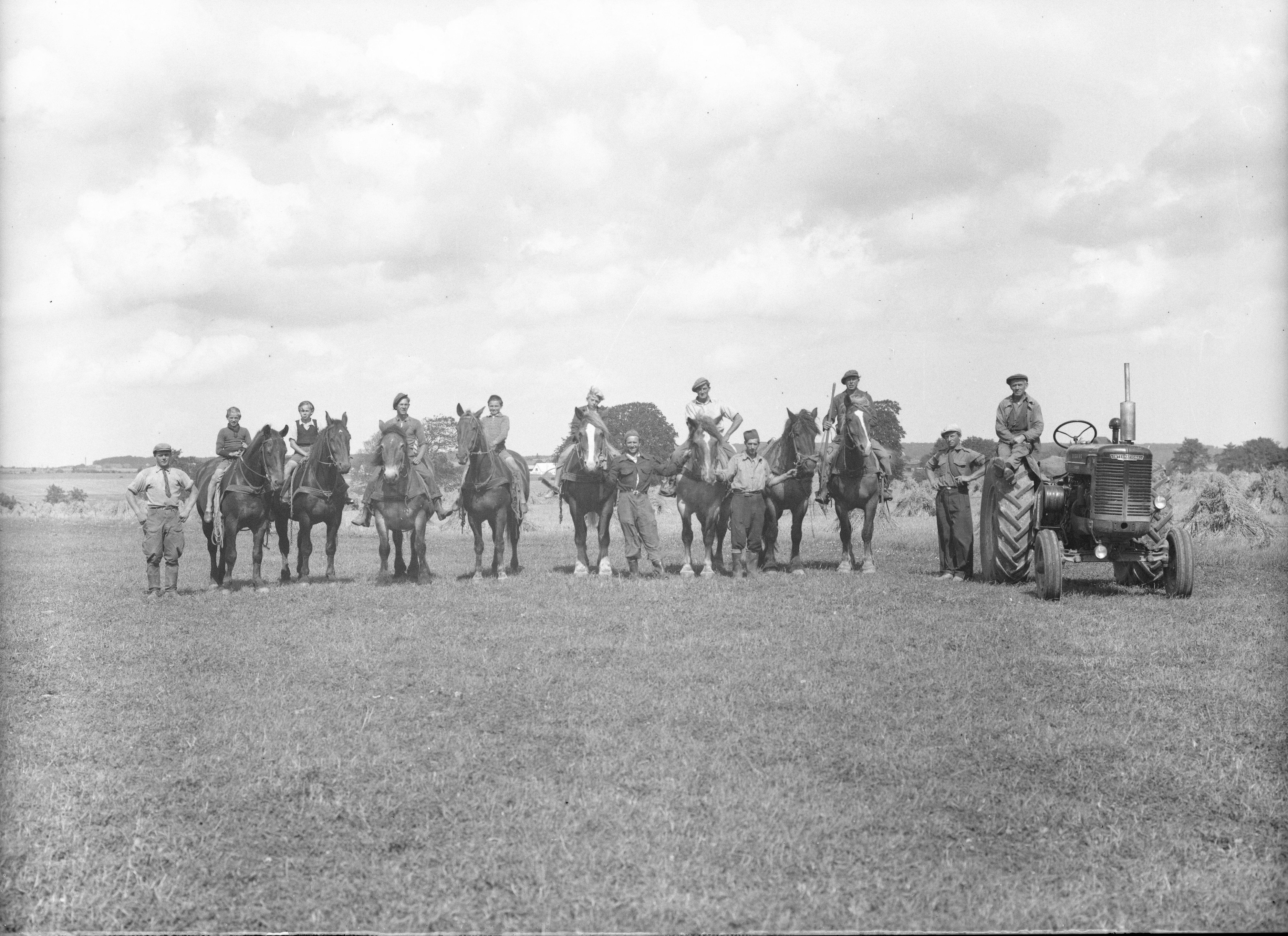 | Titel: | Gruppebillede med heste og en traktor |