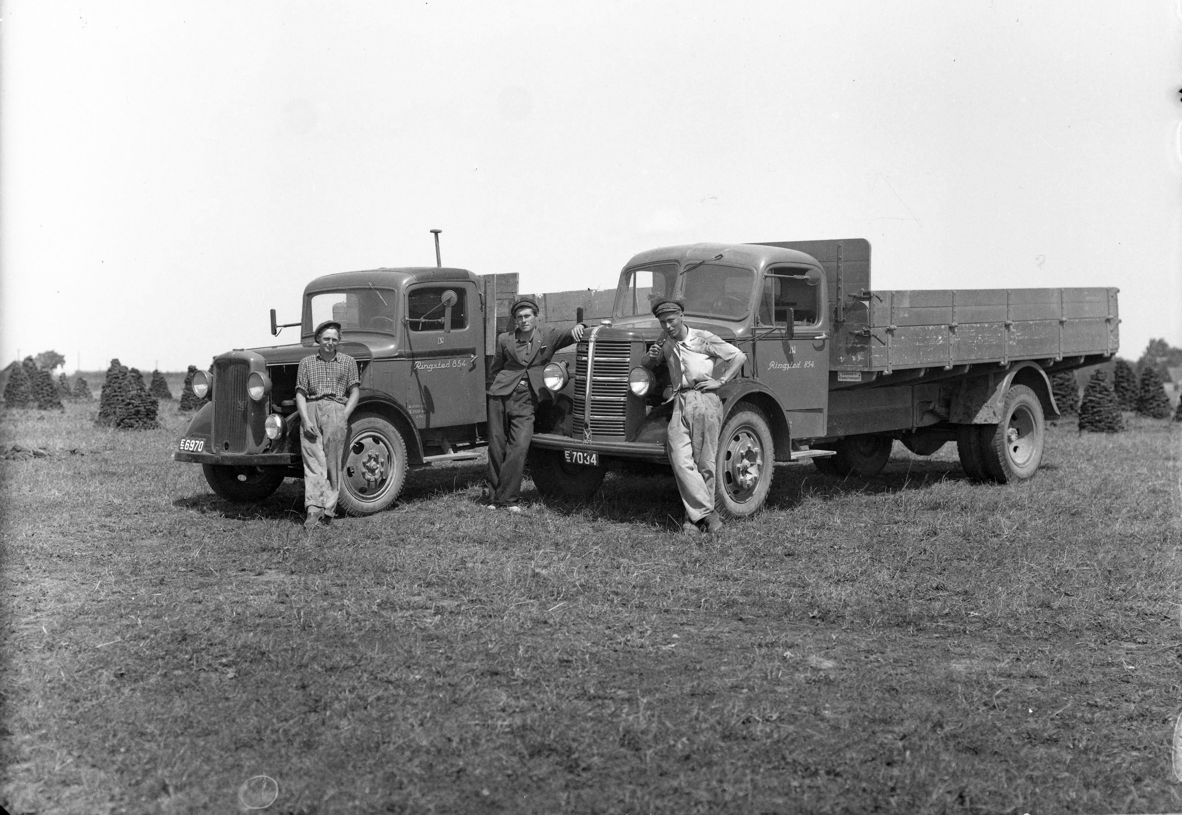 | Beskrivelse: | Det er Ejlif Nielsen der står ved den bagerste lastbil. Johan Nielsen drev vognmandsforretning frem til slut tresserne hvor Ejlif overtog forretningen. Johan og hans sønner Ejlif og Verner kørte slagtedyr til slagtning, skrald i Benløse, entreprenører kørsel m.m. |
