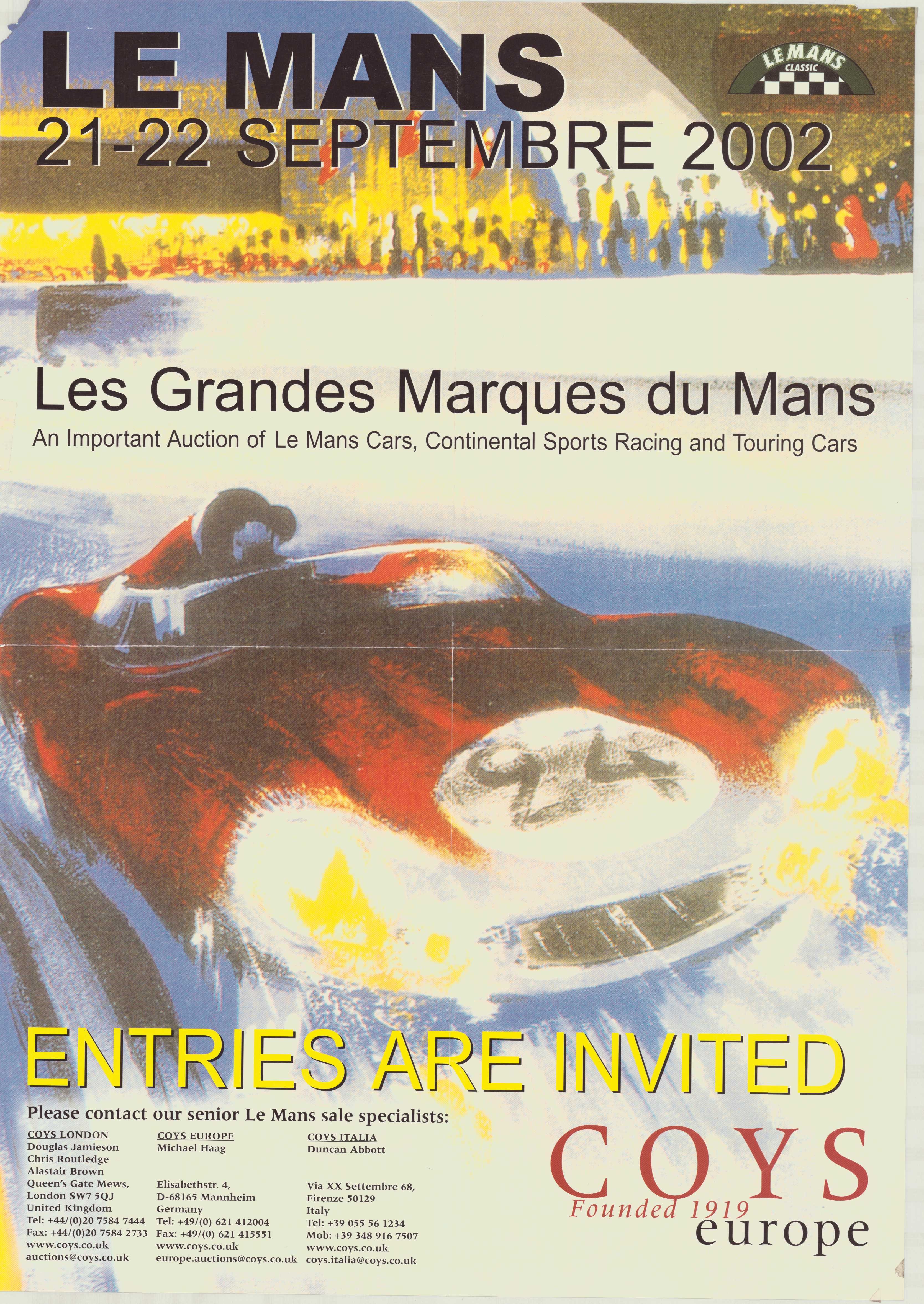 En vigtig auktion af Le Mans-biler. Continental sport racing og touring cars. |