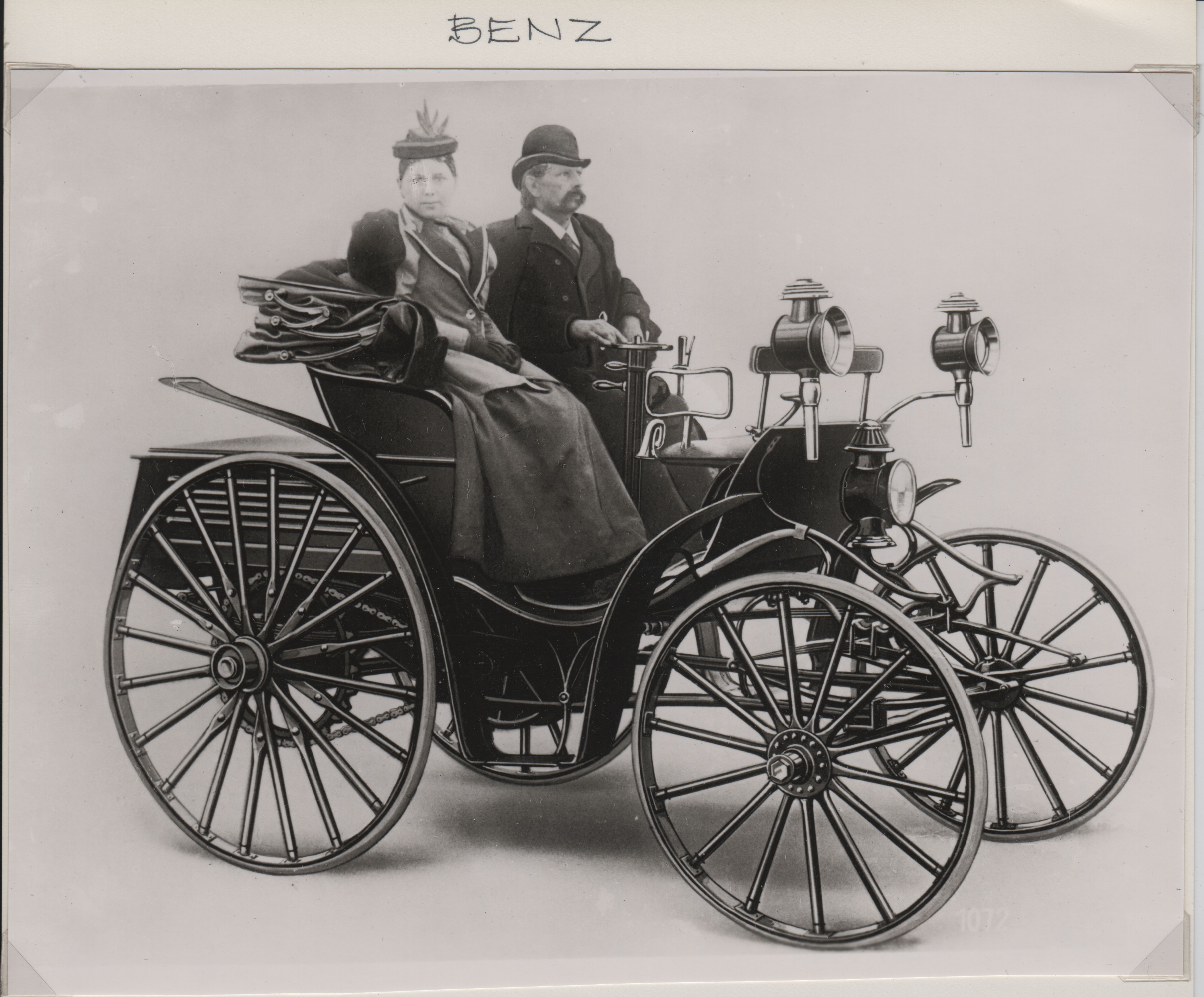 Beskrivelse:Karl Benz og frue. Det sidste billede med udflugten til Worms er nok ikke så tidligt som 1888.