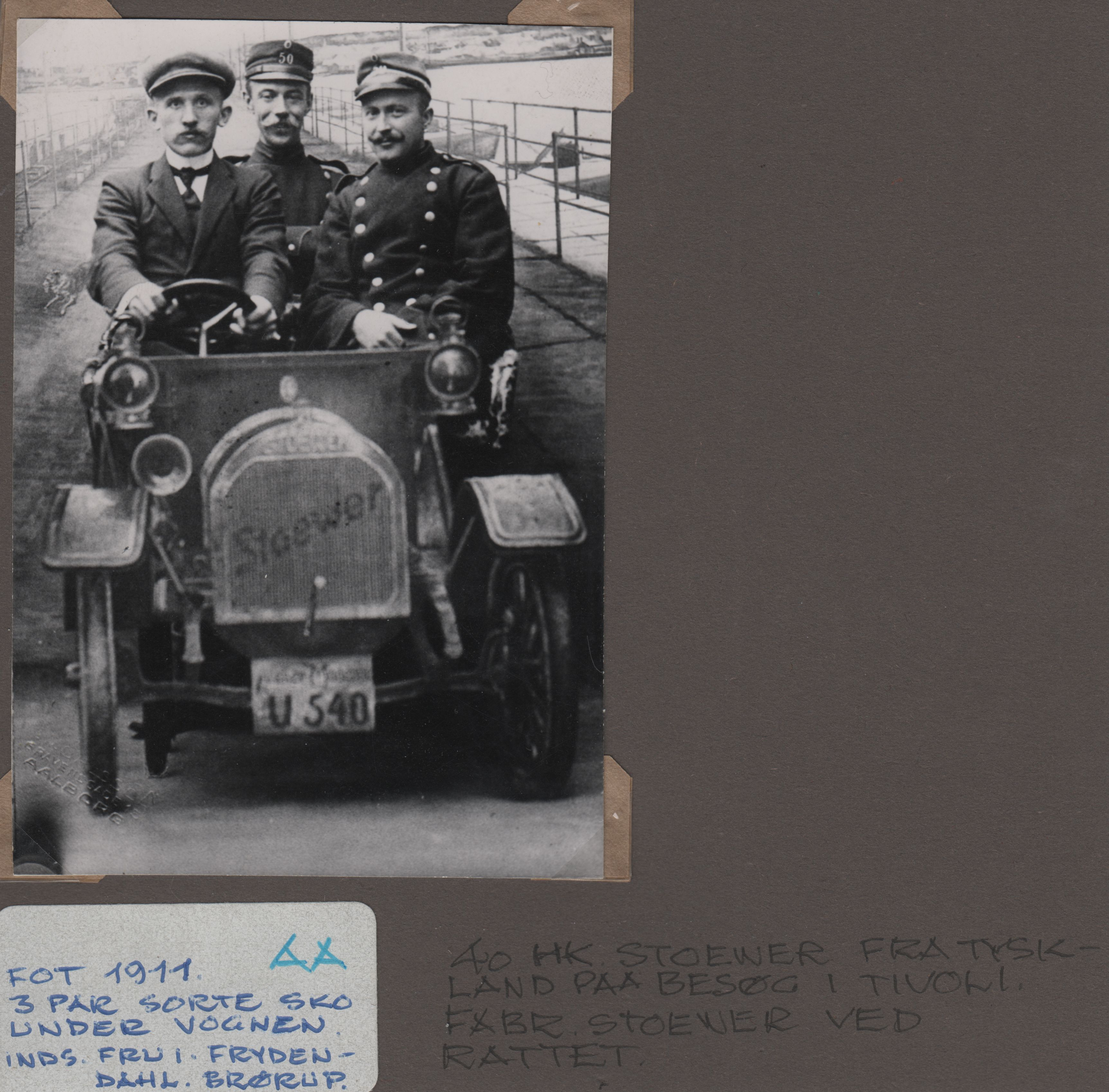| Beskrivelse: | Ry Andersen skriver at fabrikanten Stoewer selv er ved rattet, men det kan ikke passe - muligvis er han passager. Det sidste billede er nok fra en tur i omegnen i den forbindelse, men her er Stoewer heller ikke selv ved rattet. |
